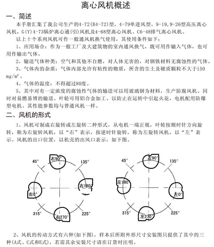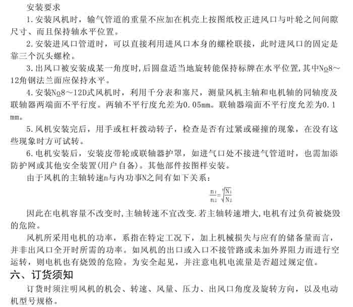 一、風(fēng)機(jī)選用參考、安裝維護(hù)使用說(shuō)明、常見(jiàn)故障分析、訂貨注意事項(xiàng)